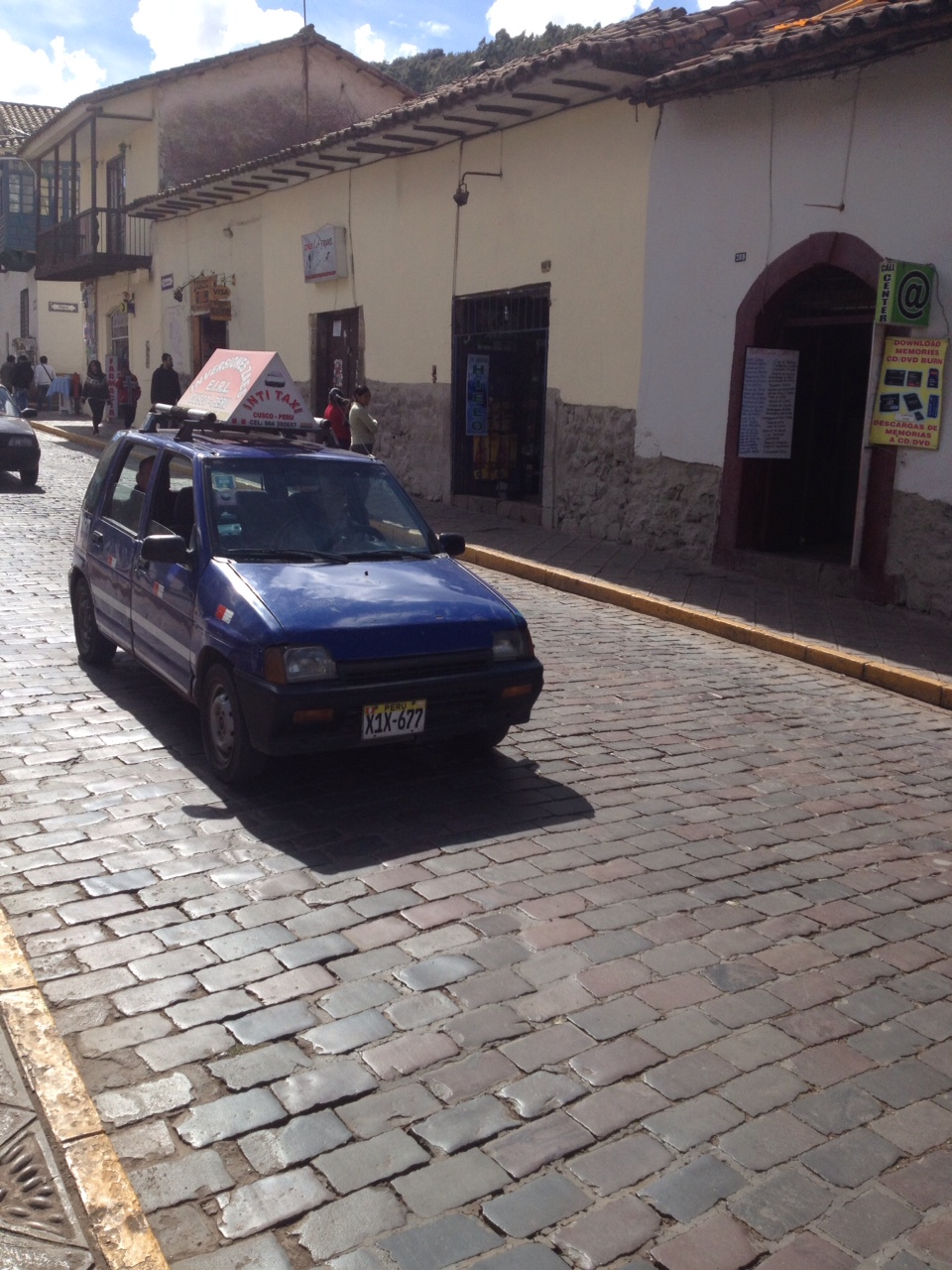 Last night I took a taxi (the tiny Tico kind) from La Plaza de Armas to my Peruvian family’s house. Bumpy and terrifying as I remembered! No regard for stop signs or lanes. It’s like a game of chicken at the intersections. On the bright side, the taxi driver was very friendly. He asked me about the U.S. and what a taxi driver makes. I don’t actually know, but I don’t imagine it being a much brighter future to leave behind your culture and family to drive a cab in NYC. Then again, I don’t know what I would do in his position.